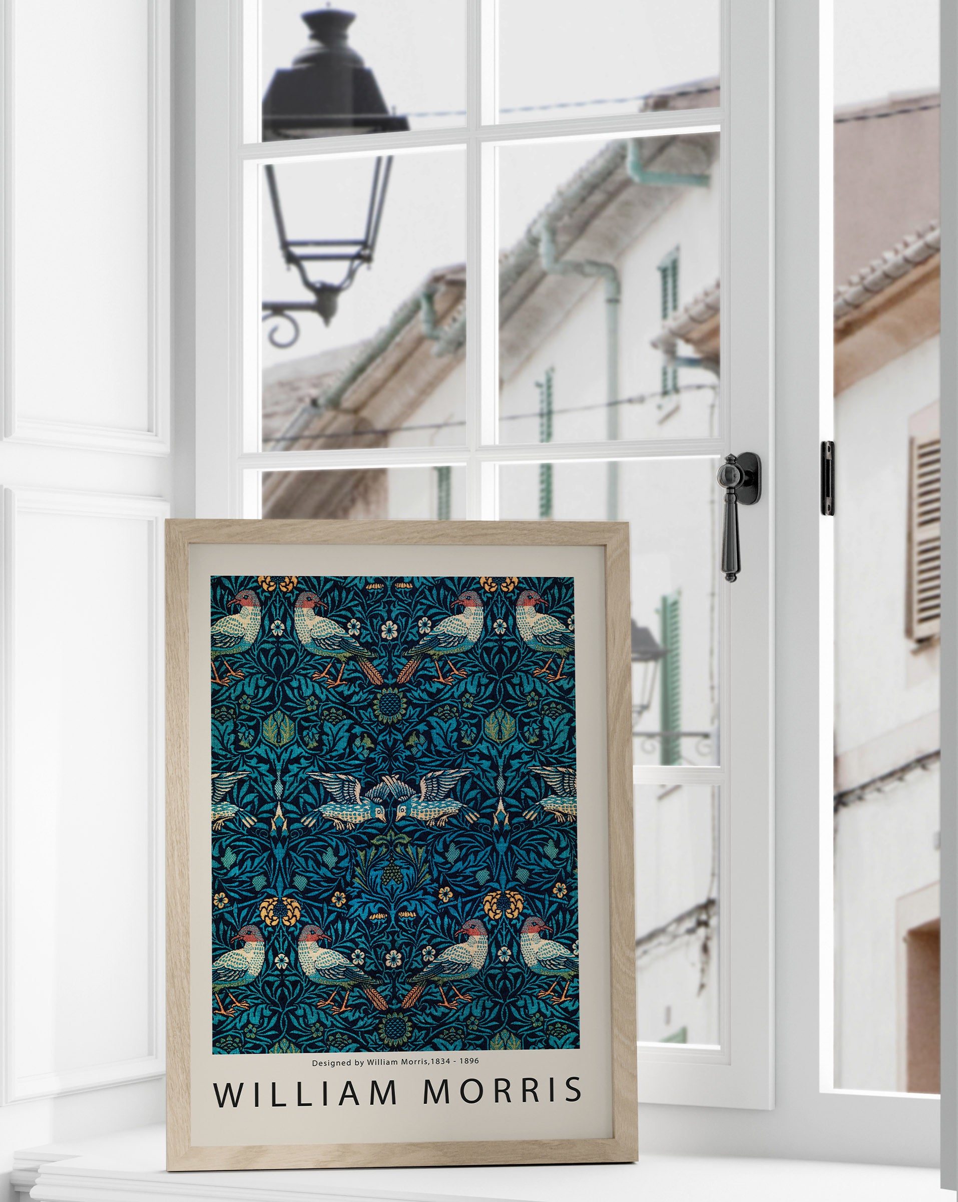 Rich in detail and storytelling, this William Morris “Strawberry Thief” print is one of the designer’s most iconic works. Featuring birds hidden among lush foliage and vibrant florals, the pattern is inspired by Morris’s garden and a clever bird caught stealing fruit. Set in deep blues, teals, and earthy tones, the artwork exudes vintage charm and layered beauty. Perfect for adding character to your living room, study, or hallway, this print blends heritage elegance with timeless nature-inspired design. Printed on premium matte paper for a refined, high-quality finish.