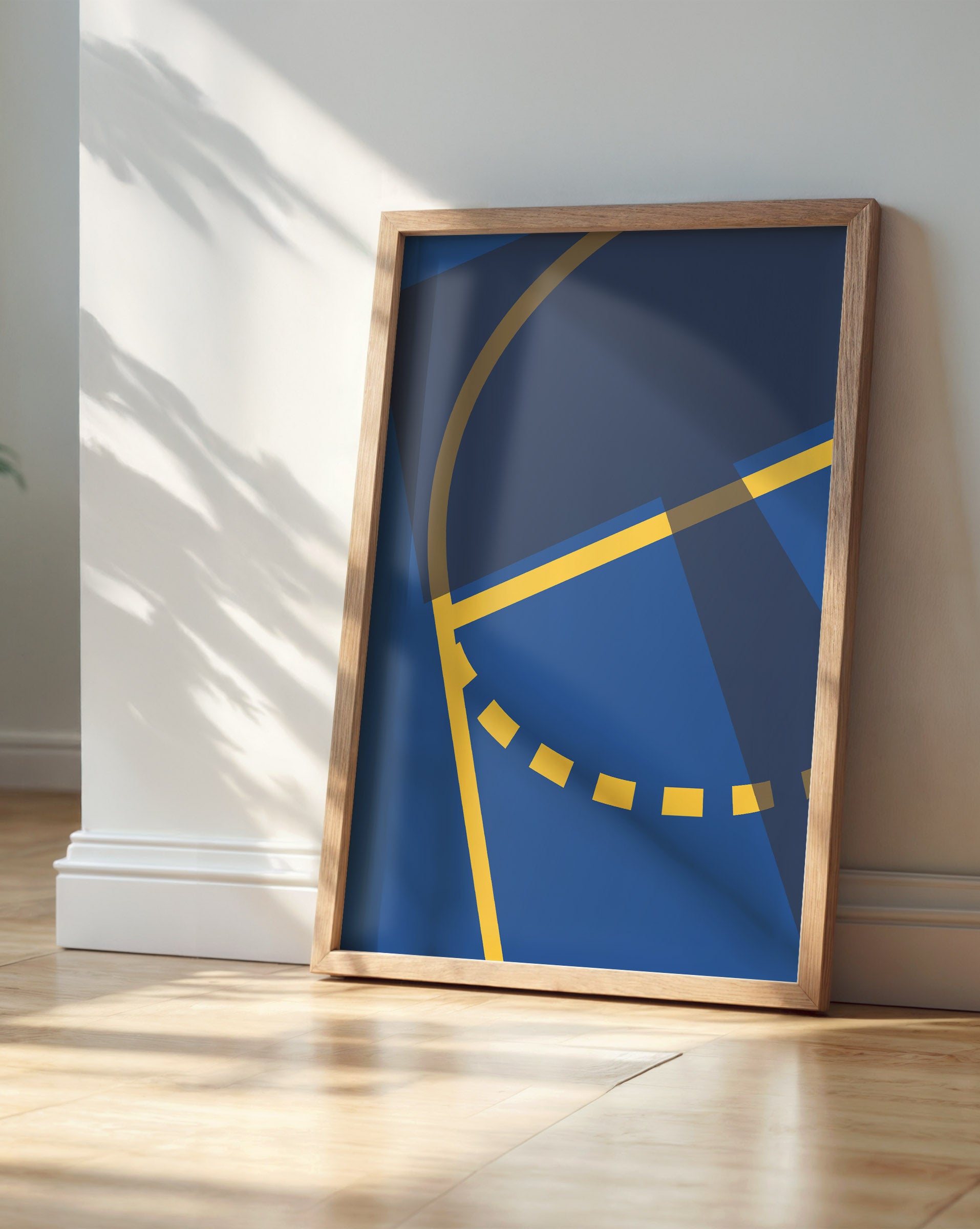 Celebrate the beauty of basketball with Golden Court, a sleek and vibrant art print designed for fans of the game and lovers of modern design. Featuring a striking composition of deep royal blue contrasted by clean yellow court lines, this piece captures the iconic geometry of a basketball key in an abstract, minimalist style. The bold colors and crisp layout evoke a sense of motion and strategy, making it a standout piece for any interior.
